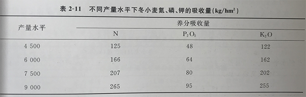 華北區(qū)域冬小麥為例,不同產(chǎn)量水平下對(duì)氮磷鉀的吸收量:
