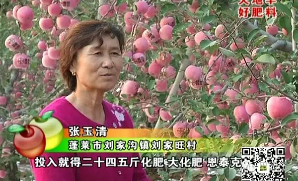 7年前,張玉清也和普通果農一樣,對肥料不懂,真假都分不清,更別提科學施肥了,故樹勢狀況一般,蘋果一般,效益也一般。當眾德集團技術人員將眾德恩泰克套餐方案推薦給她時,她眼前一亮,但又半信半疑,抱著試試看的態(tài)度試用,結果秋季大豐收,樹體健壯度和花芽飽滿度令她對套餐充滿了信心。結果是,一口氣連用7年,越用越好,根本舍不得恩泰克了,真正信服了眾德套餐。2013年,在是否繼續(xù)使用眾德套餐的問題上,張玉清和丈夫曾發(fā)生過分歧,丈夫想變換肥料,說樹和人一樣需換換口味,但張玉清不肯,至于原因,她說有一件事讓她更加堅定用眾德套餐。有一年,一果樹學權威教授參觀其園,問大肥施用情況,張如實相告,年株用恩泰克24斤,分3次施入,并配合眾德生物有機肥株用25斤。教授大驚,大化肥用量大,土壤酸化會重,引起問題,不利產量和質量。張玉清從未測過土,只耳聞過酸化危害,但她的樹株產500-700斤,表光、個頭及色澤俱佳,若有問題,會有7年的豐產嗎?教授也納悶,通過土樣化驗,PH是6.3,屬適宜范圍。教授驚訝于如此大的施肥量,連續(xù)7年如此,土壤未酸化,問恩泰克是何肥料,張的回答是,德國巴斯夫研發(fā)的中性全營養(yǎng)穩(wěn)定性長效肥,國際品牌,教授亦感嘆于德國人的專業(yè)與高明。此事是堅定張大姐信心的原由。